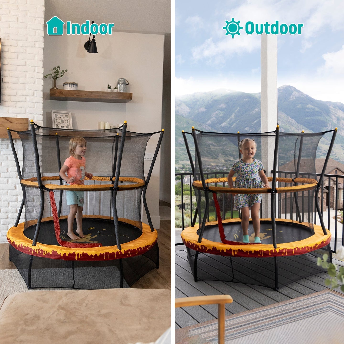 360-DEGREE HANDLEBAR: This mini trampoline for toddlers features a 360-degree padded handlebar that offers stability for your little jumper. The mini trampoline with net enclosure is a great small trampoline for kids.
